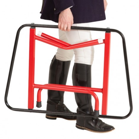 The simple answer to carrying saddles in the estate car / 4 x 4 and folds flat in 2 seconds to leave clear space. Rubber feet and friction fittings keep it in place. Lightweight and easy to carry - a real boon for travelling. Remains in 1 piece; no parts to lose! Steel construction. STUBBYFINE coated - frame in Black and arms in Red or Black. For an independant review please see NEWS. (HS Code: 83024900)