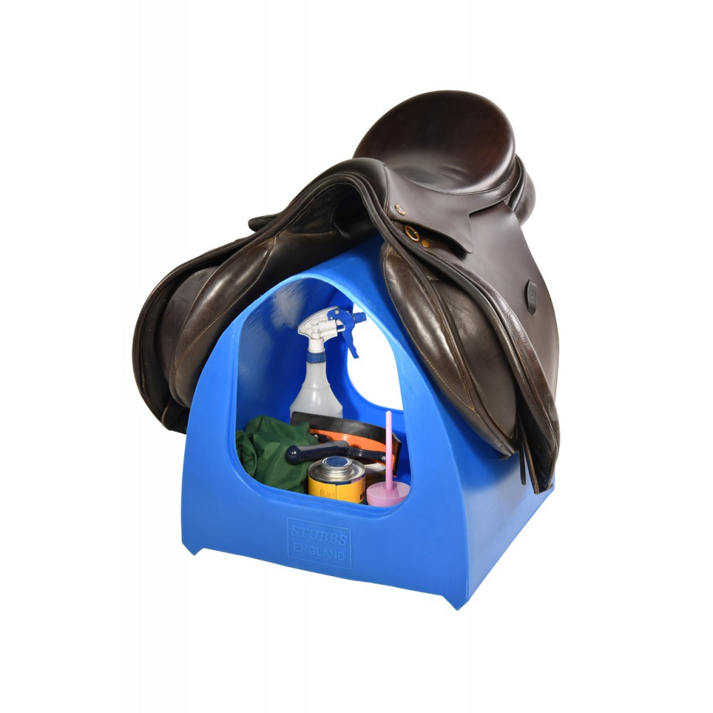 Putting your arm through this instead of just the saddle means you carry your saddle horse, grooming kit AND saddle all together. Ideal in the car, at the stable, in the tack room and in between. Large flat internal tray takes most things, including a small dog! Tough STUBBYTHENE moulding in Apple Green, Red, Blue, Green, Pink, Purple, Black, Yellow or White. For an independent review see NEWS. (HS Code: 39269097)